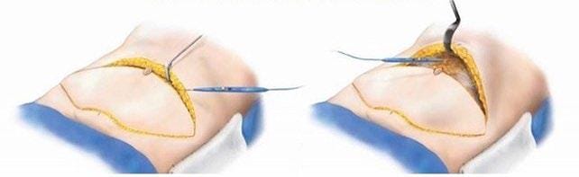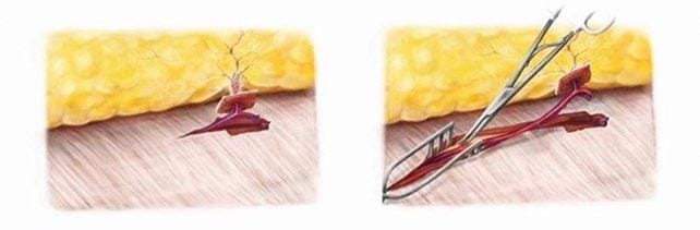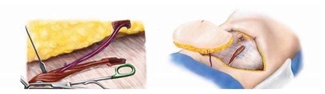 The blood vessels are traced through the muscle and divided. The DIEP flap can now be transferred to create a new breast.