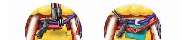 The blood vessels of the chest and DIEP flap are joined together under a microscope.
