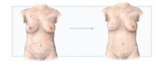 Illustration above shows patient has had a left breast uplift to match her right DIEP reconstruction.