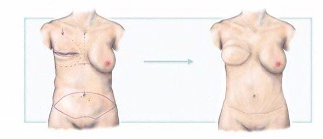 Its advantages include replacing like with like tissues that have the same consistency and feel as your own breast tissue. Furthermore, the tissues will change as your body gains or loses weight. In contrast, a breast implant reconstruction may eventually need replacing as it is a foreign body. Tissue from the abdomen is taken and shaped into a breast. The blood vessels are attached to the blood vessels in the chest.
